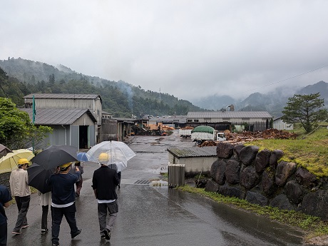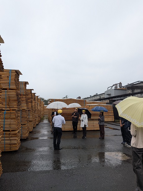 少し前になりますが、外の壁に張る焼杉板を中心とした木材を使った建材メーカーさんの工場見学に行ってきました。
