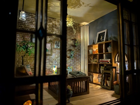 繊細で綺麗な作りで、照明も灯っているので、リアルなお部屋に見えますがミニチュアなんです...!