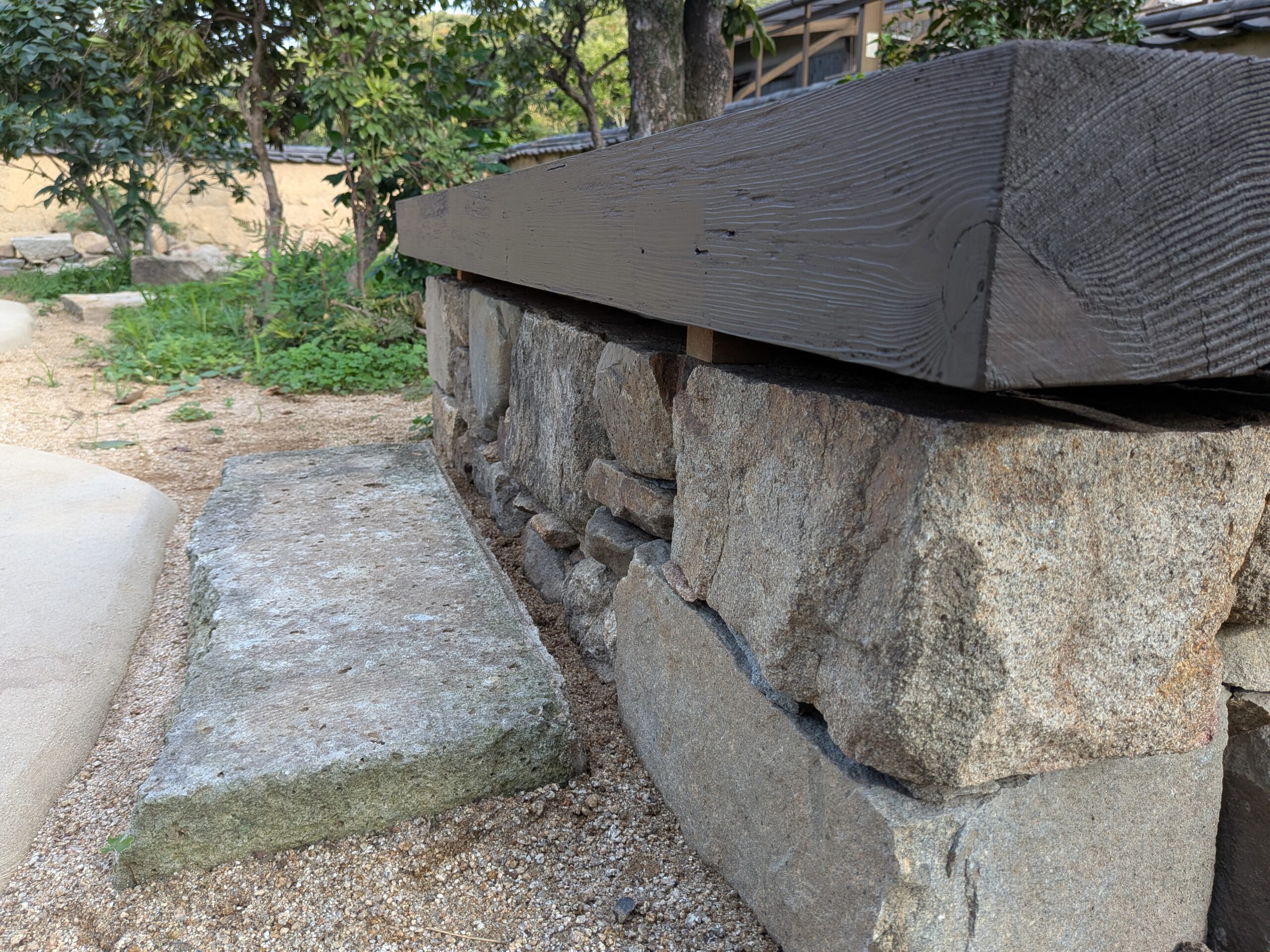 こちらのベンチの石もあるものの大きさをうまく組み合わせて…
