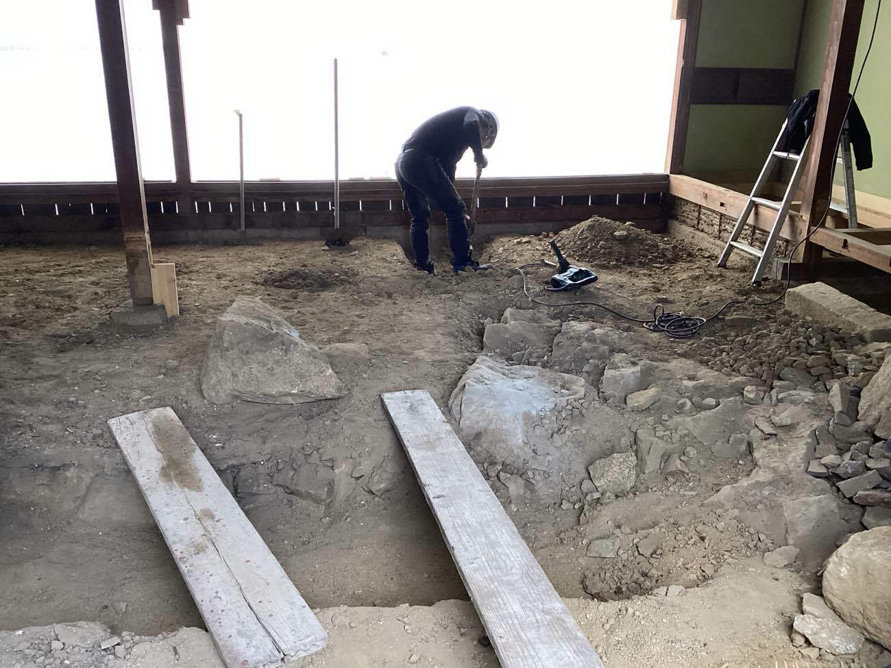 まず基礎施工するところは人力堀りです。