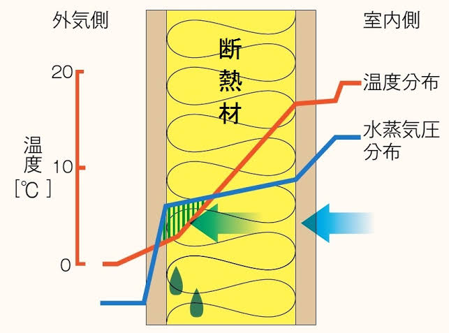 壁を構成する材料は湿気を通してしまう材料がほとんどです。