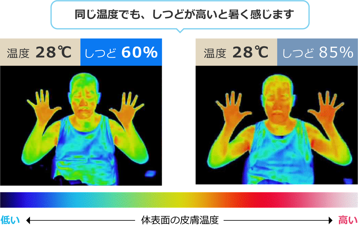 【要するにエアコンをそんなに効かさなくても快適ということです。】