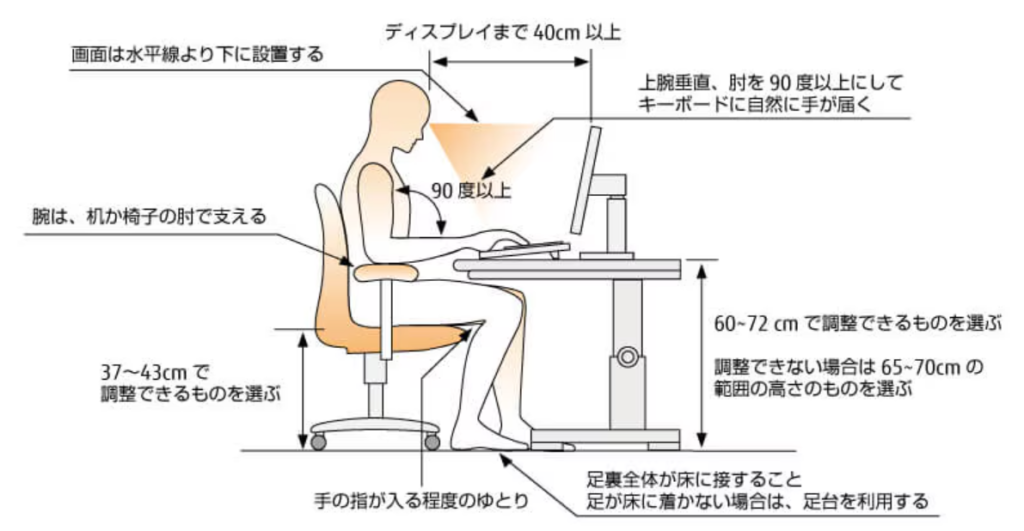 高機能チェアを使っても、机や椅子の高さが体型に合っていなければ効果が薄くなります。