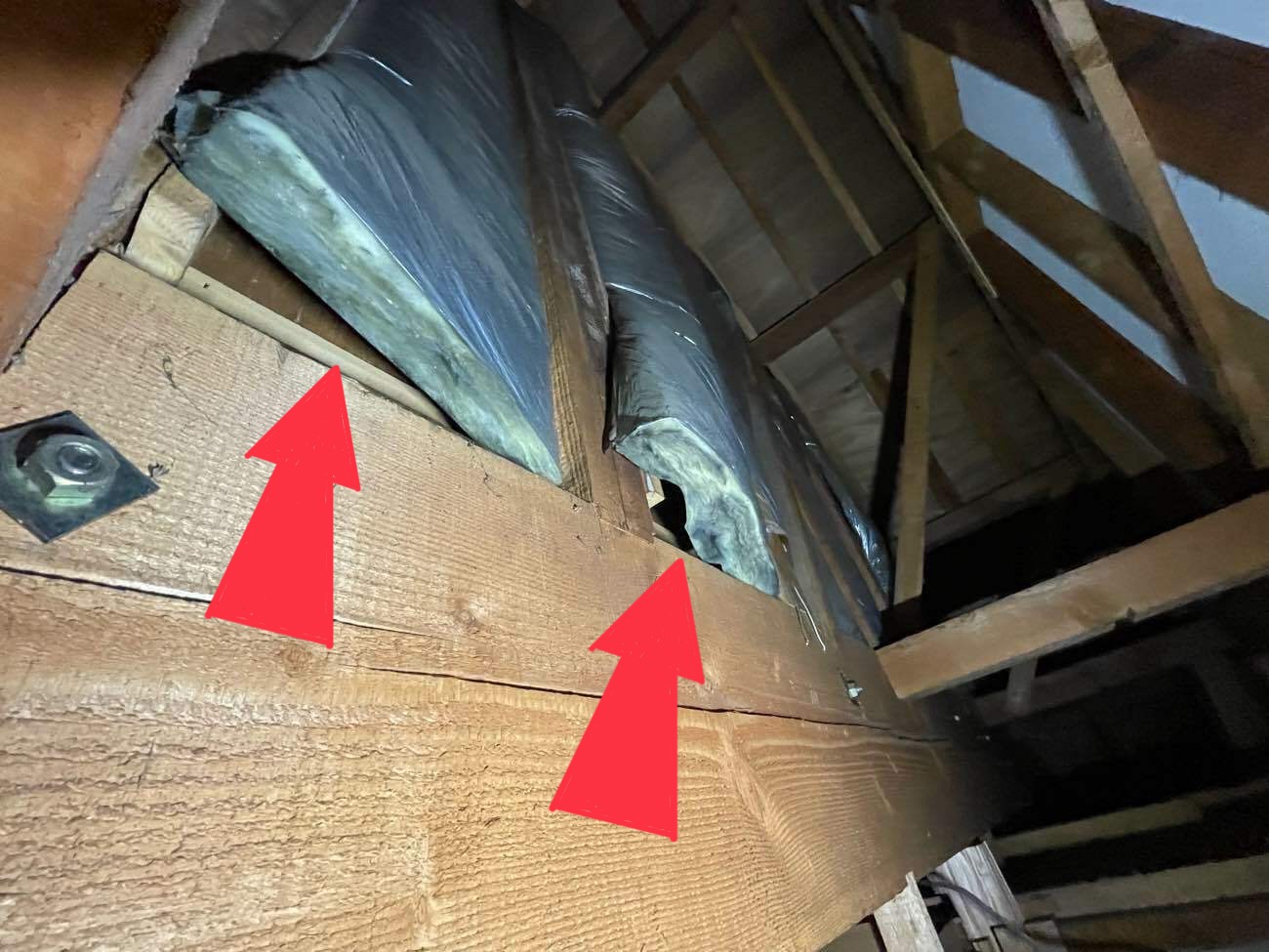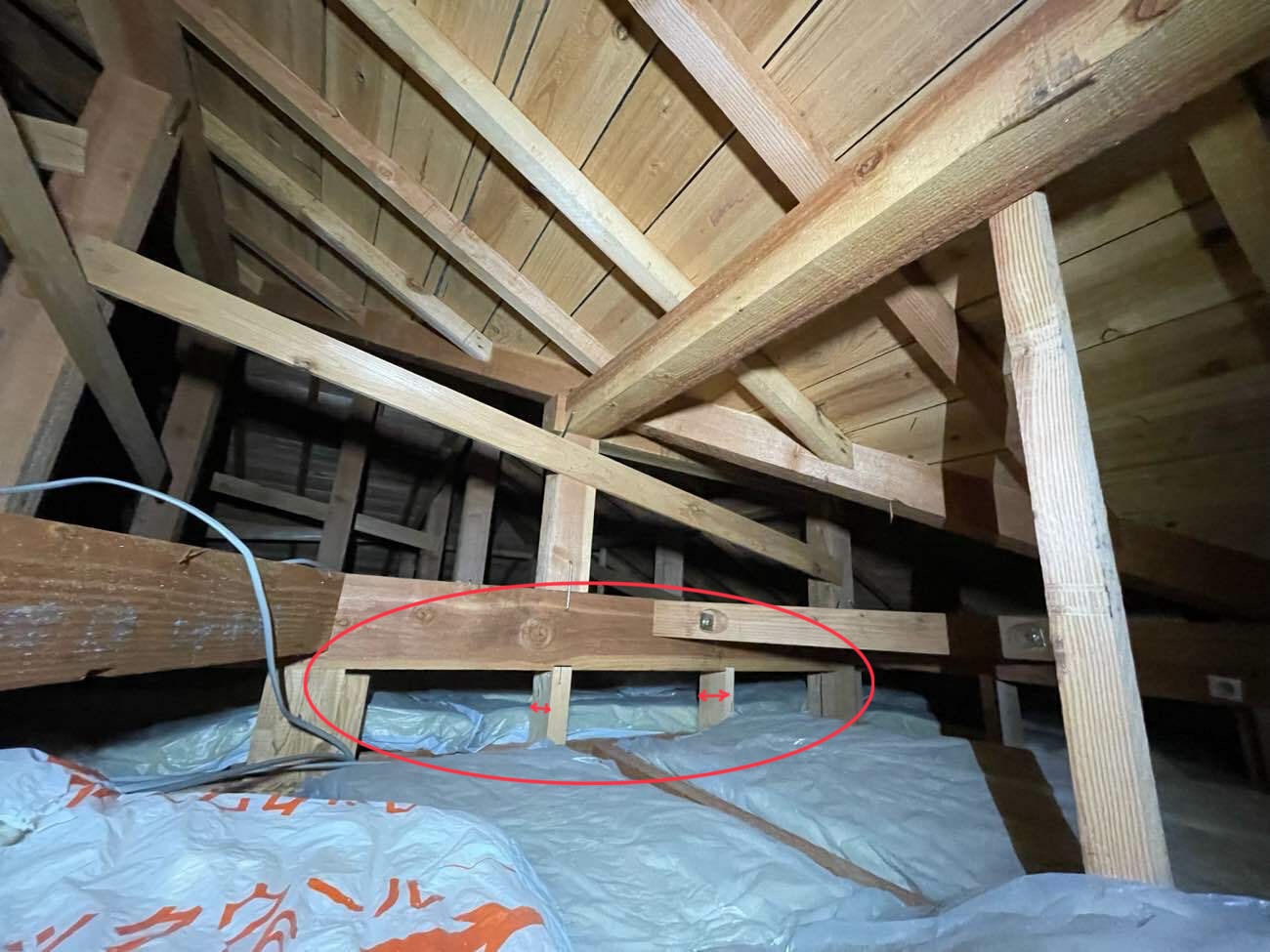 上の写真は2階の天井点検口から天井裏を撮影した写真です。