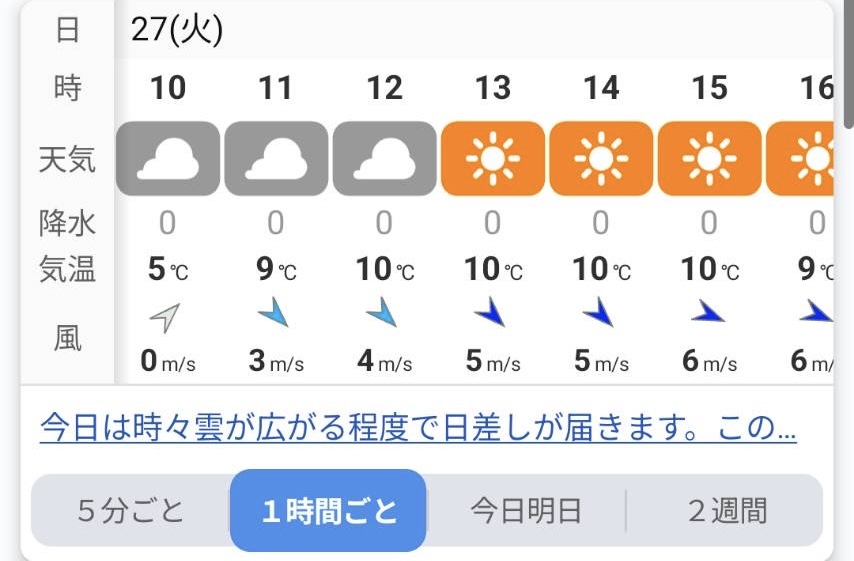 12時にかけて10℃まで上がる、体がついていきません。