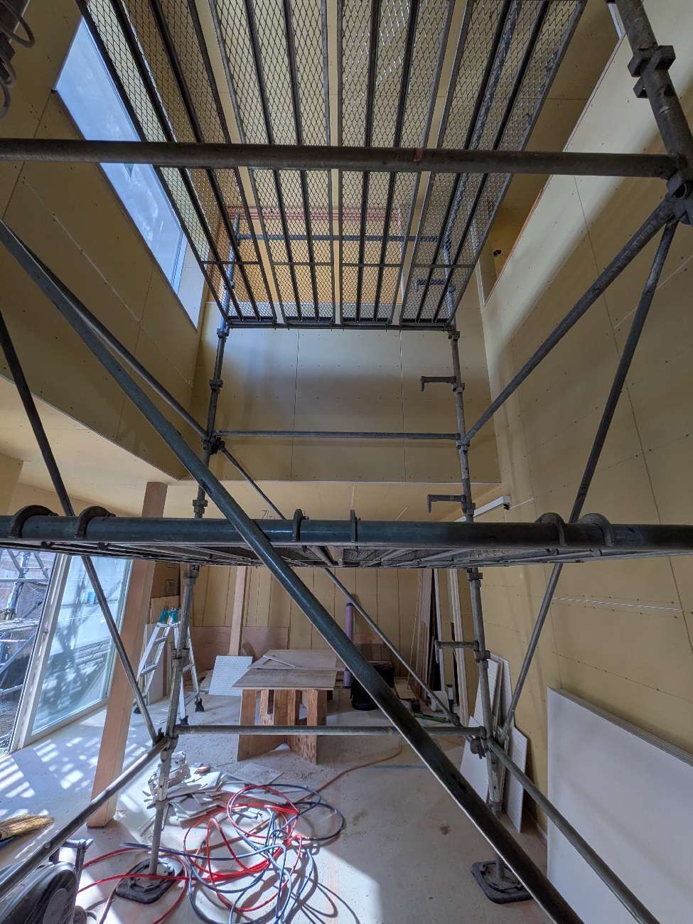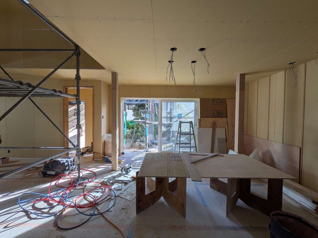 blog 【山田の日刊ブログ】リノベモデル進捗 山田 真司 家づくりについて性能について 『外は四季。内は常春。』 耐震・気密・断熱 性能向上リノベーション『再築-SAITIKU-』担当の山田です。 工事中のリノベモデル。 大工工事は終盤。 内装工事用の足場が組まれました。 吹き抜けのクロス工事、電気工事が終わると撤去されます。 窓が少ないのに明るいリビング。 完成が楽しみです。 PROFILE この記事を書いたスタッフ 山田 真司 担当ブログ プロフィール 担当事例 1日の中で何をしている時間が好きなのか、新しい家ではどんな暮らしがしたいか、ご家族の"暮らしのイメージ"を丁寧にお聞きします。ロケーションを活かしながら、お客様のこだわりと理想を詰め込んだ「あなたらしい暮らし」を、10年以上の現場監督経験を活かして設計します。 前の記事 次の記事 一覧へ戻る