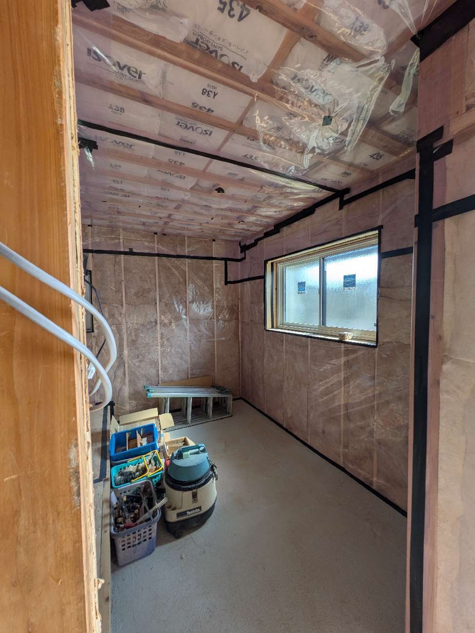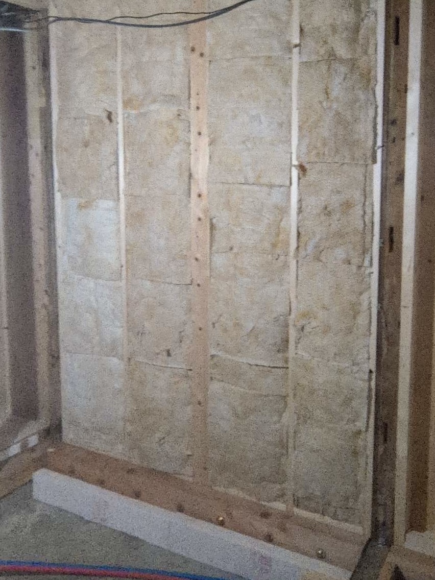 耐震の壁を施工しながら断熱も入れる部分があります。