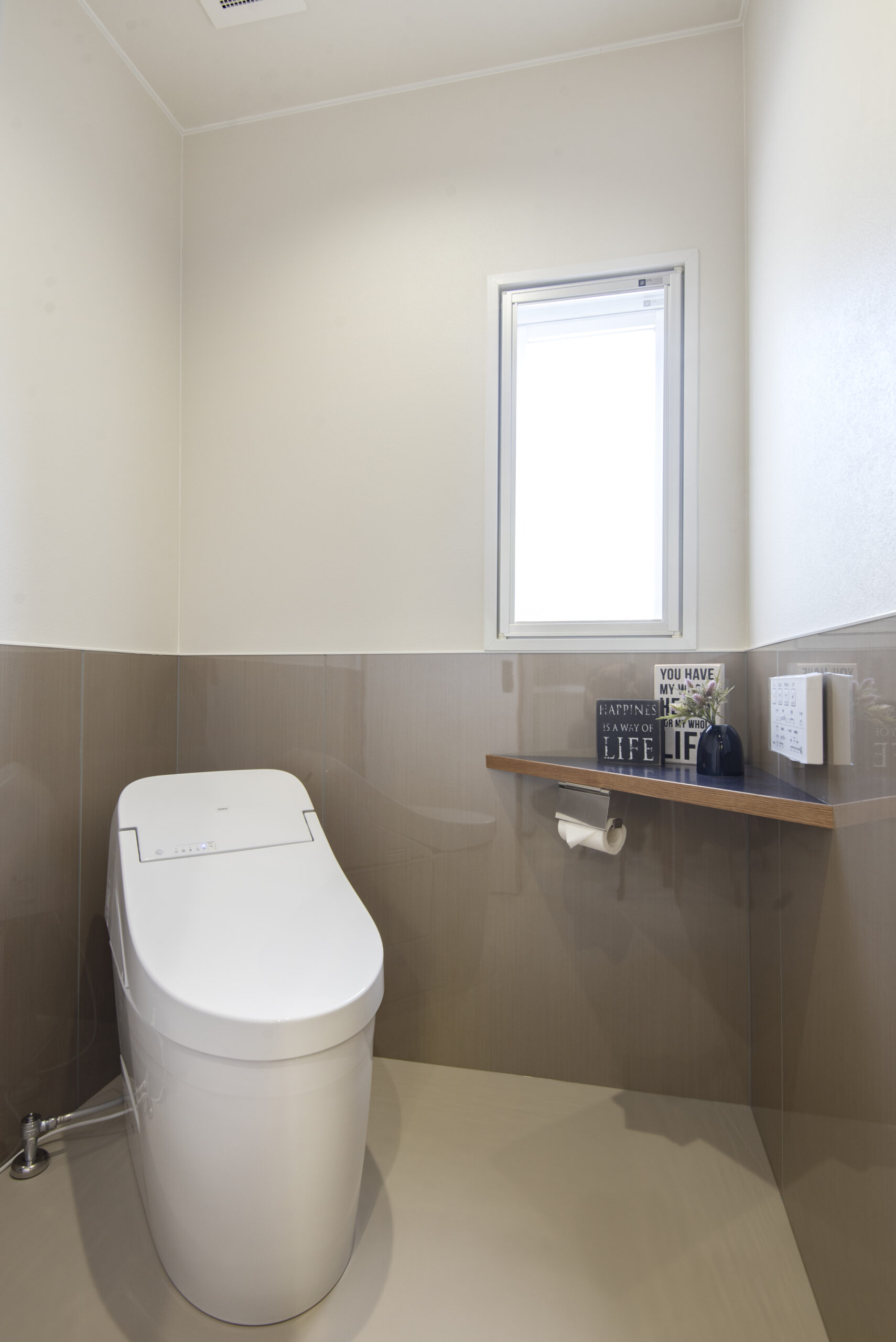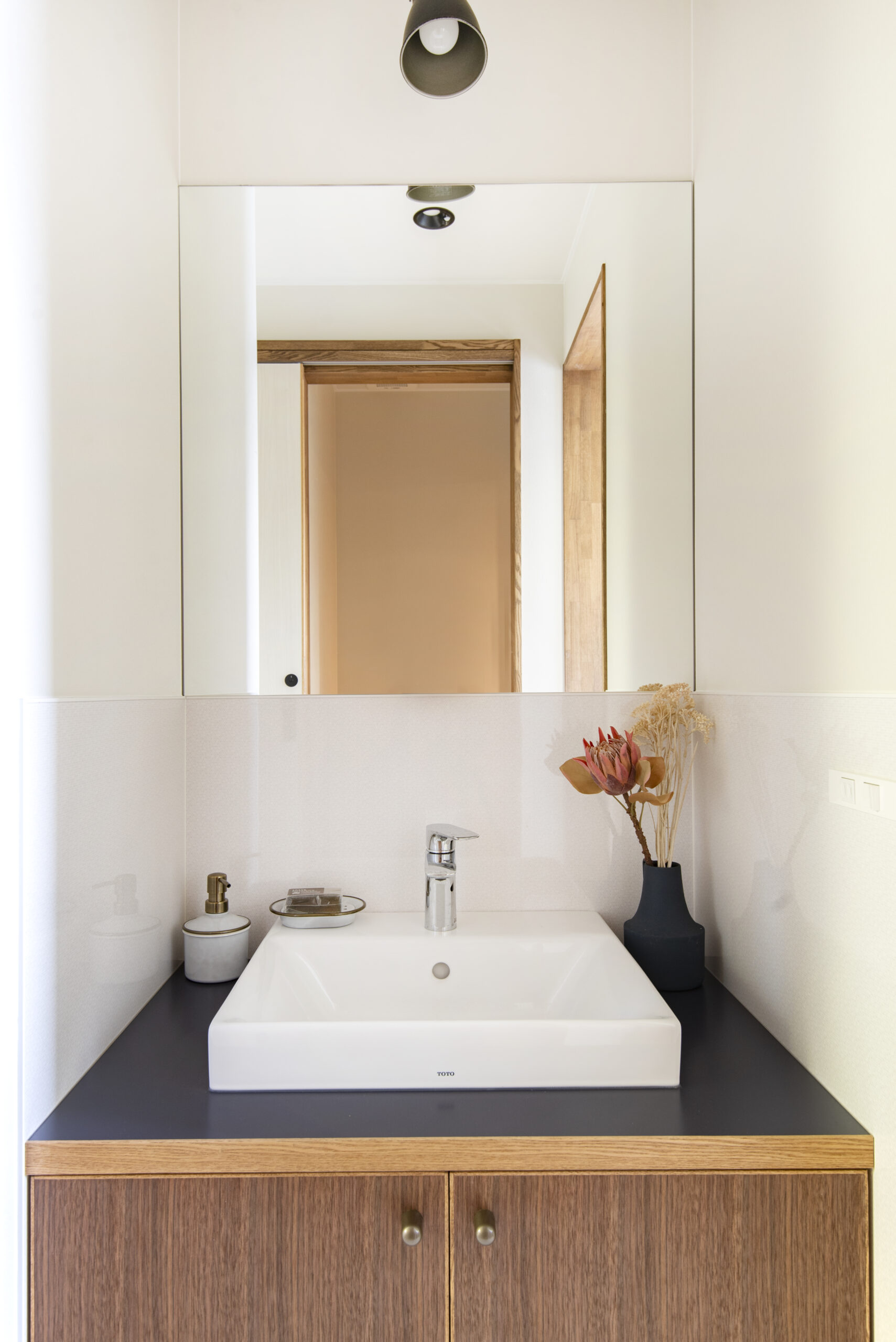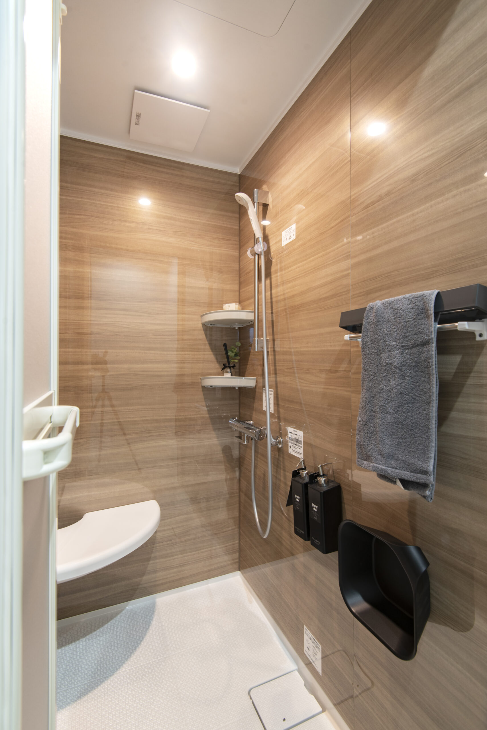 コンパクトにまとめた洗面、トイレ、シャワールームは使いやすく、