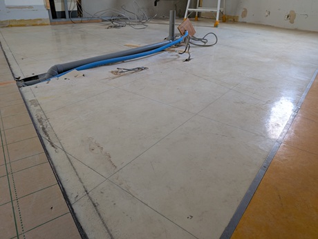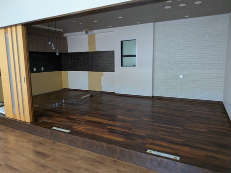 よく見ると、床が張り分けられていて、なぜか斜めに柄が入っています。