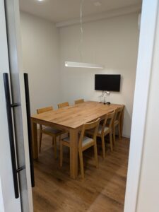 新しくなった打ち合わせスペースには、新たにモニターを設置しました。