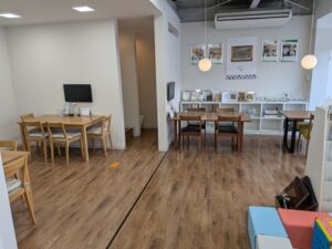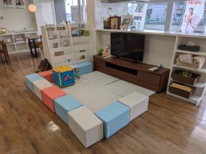 以前のブログでもお伝えした通り、キッズスペースは打ち合わせ席の真ん中に配置しました。