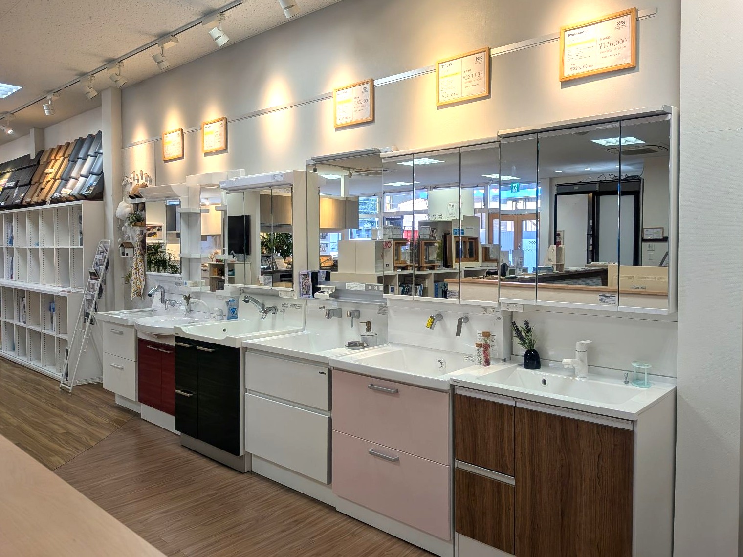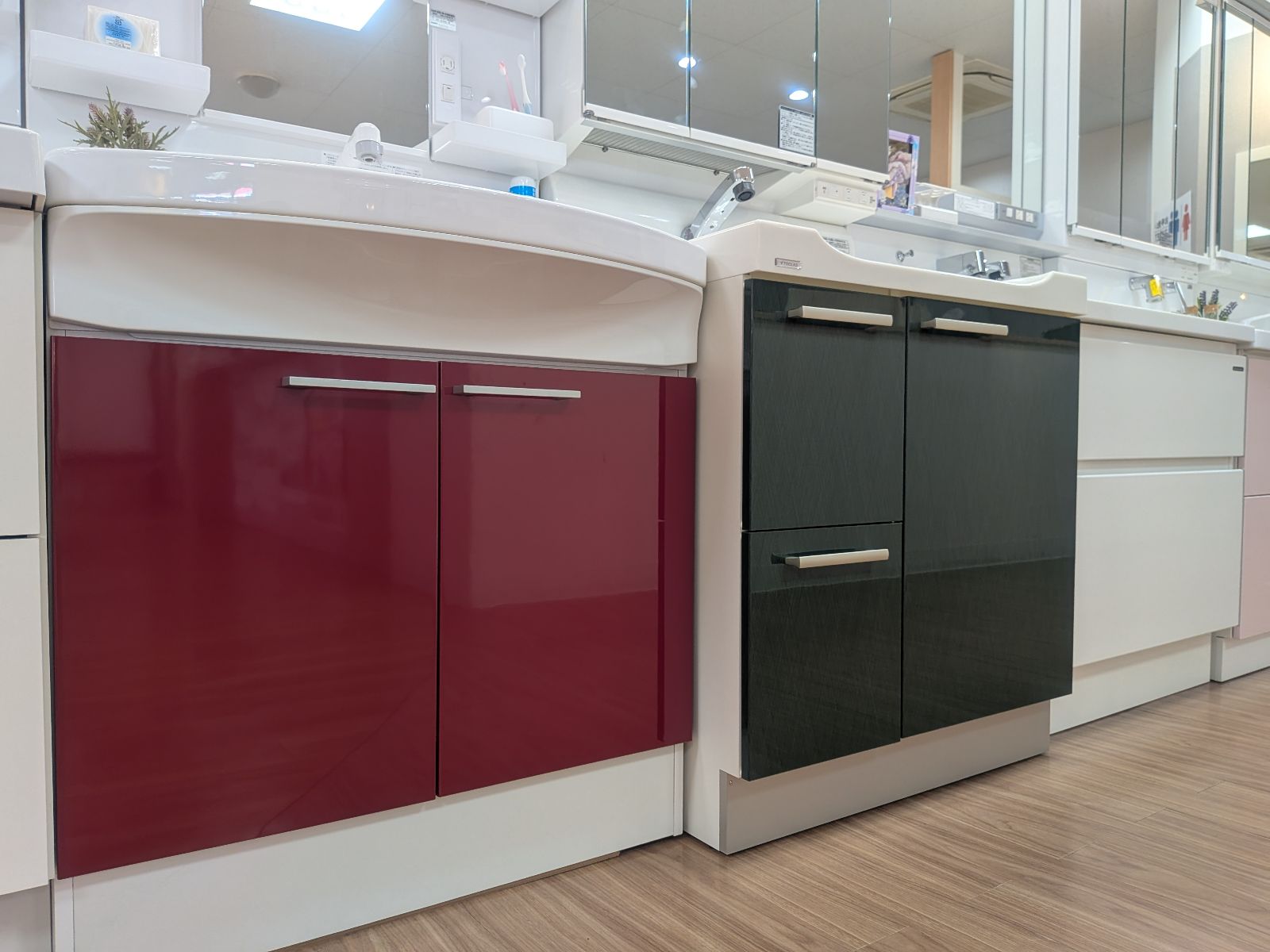 ちなみに、隣に展示してある赤色の洗面台と並んだ姿は…偶然にもクリスマスカラー!