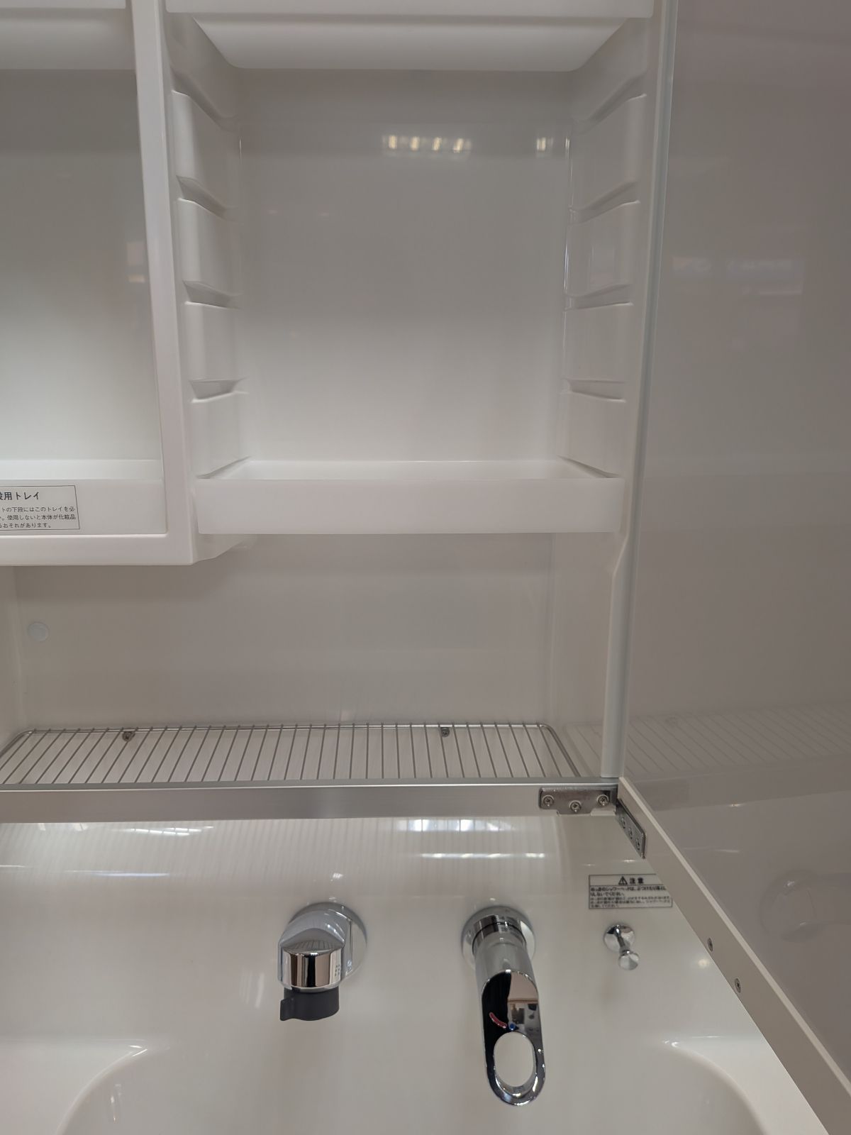 大きな特徴は、3面鏡の裏側にある収納。