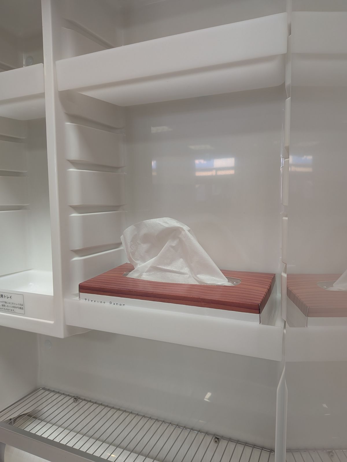 また、収納の奥行きが広く、他社製品では入りにくいティッシュ箱もすっぽり収まります。