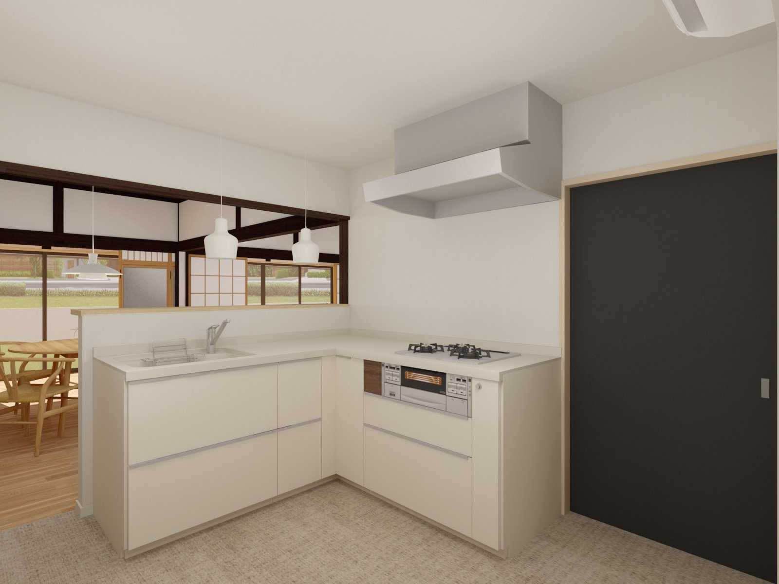 和室を広いLDKに変え、水まわりは一か所にまとめてバリアフリーに。
