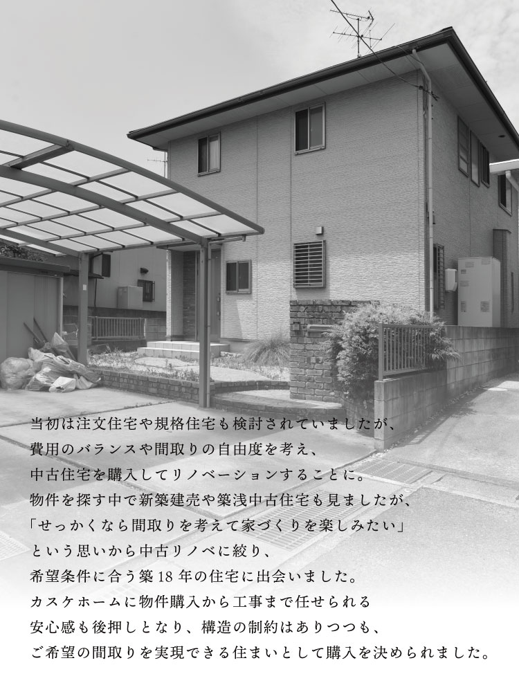お客様のご要望 ○ 中古購入からリノベまで一社完結で任せたい ○ 和室がほしい ○ 収納を増やしたい |