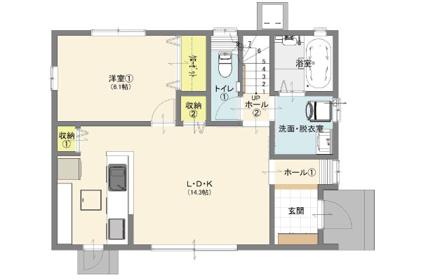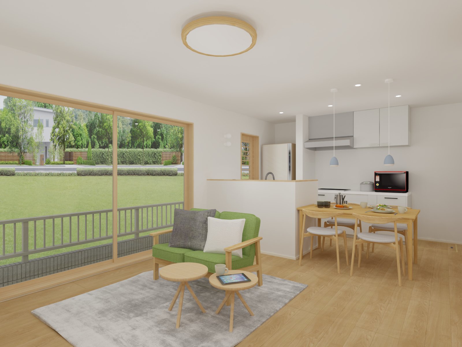 Ⅱ型キッチンとダイニングを横並びに配置。リビングを広く使える間取りに。