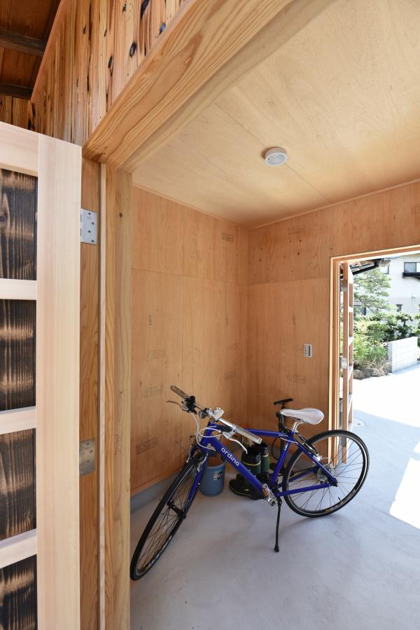 | もともとトイレのあった場所は、自転車置き場に変更しました | 自転車は前と後ろの両方から出し入れできます |