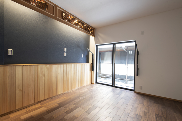 | 開口部やまわりの外壁は、既存となじむように同色の焼き板で補修しています。 |
