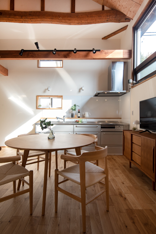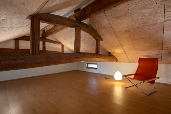 奥さまの実家で納屋として使われていた場所を居住空間にリノベーション。元々使われている部材などを大事にしたいというNさまのご要望がありました。