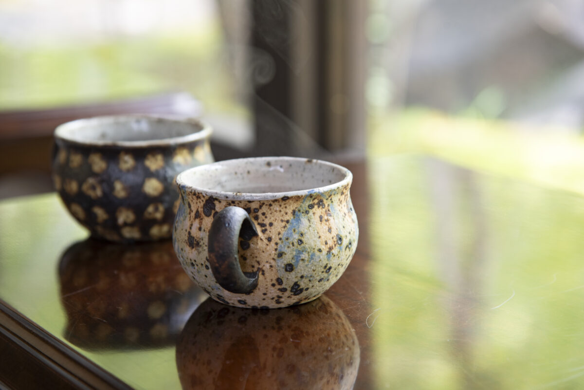 手洗いボウルは古民家の雰囲気にも合うように焼き物を採用。
