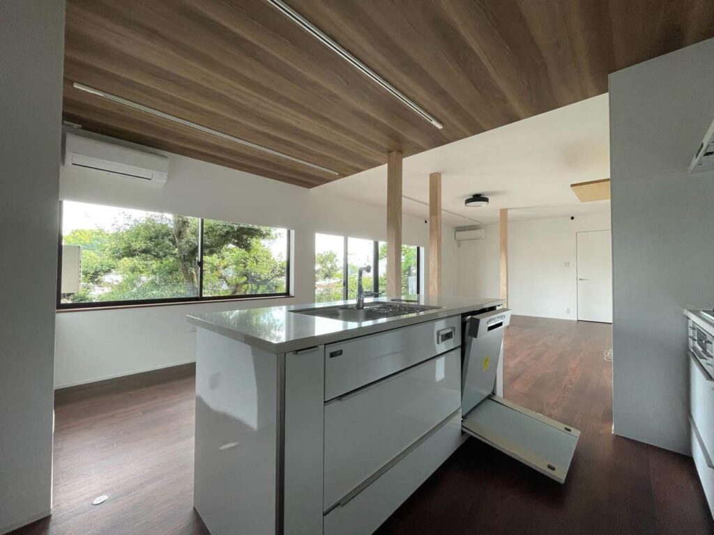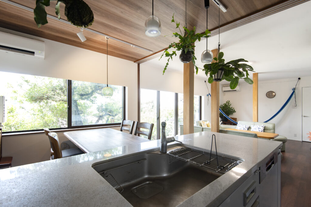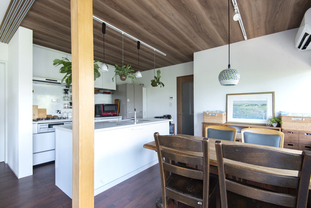 台所と居間を一体化し、光と風が通り抜ける明るいLDKを実現しました。構造補強による耐震改修と高断熱化で、見た目だけでなく性能面でも安心できる住まいに。