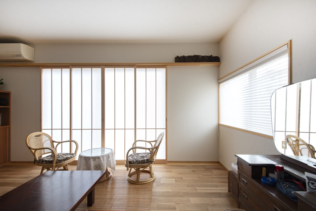 リビングとデザインを揃えた障子で統一したセカンドリビングは、同居という新しい暮らしの中で「自分の時間を大切にできる場所」として設けました。