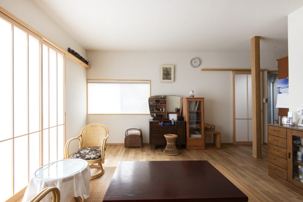 一番長く過ごすリビングは、日当たりの良かった縁側を室内へと取り込むことで、奥まで自然光が届く明るい空間に生まれ変わりました。