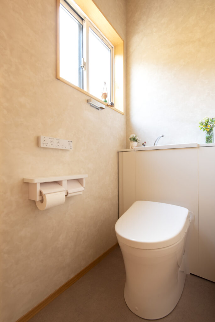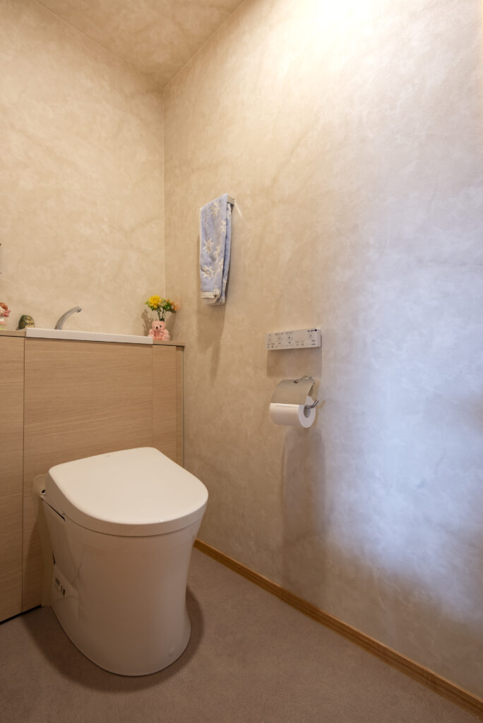 家族みんなが使いやすい共有スペースに1つ、さらに寝室に隣接した場所にもう1つ、計2セットのトイレと洗面化粧台を設けました。